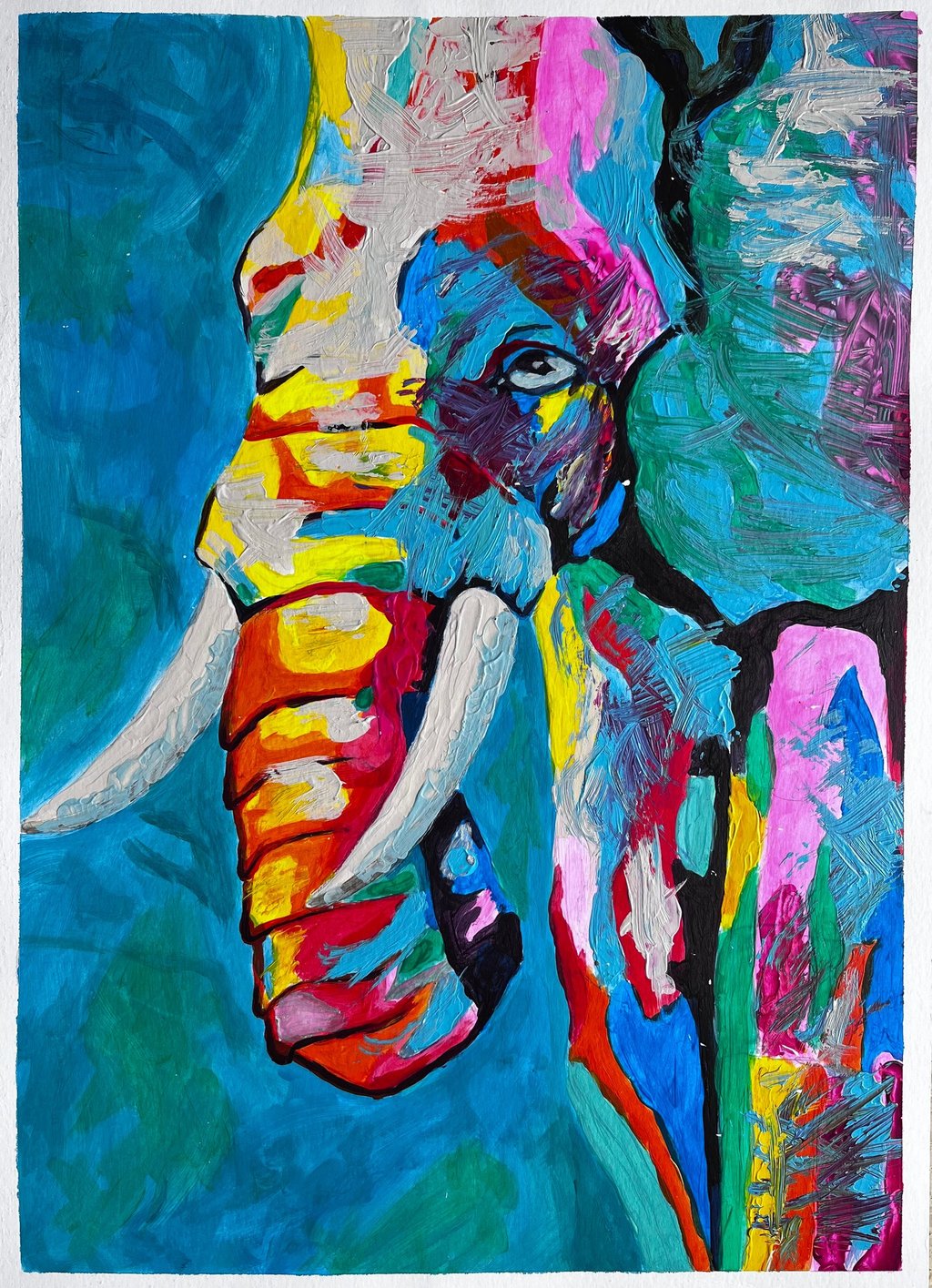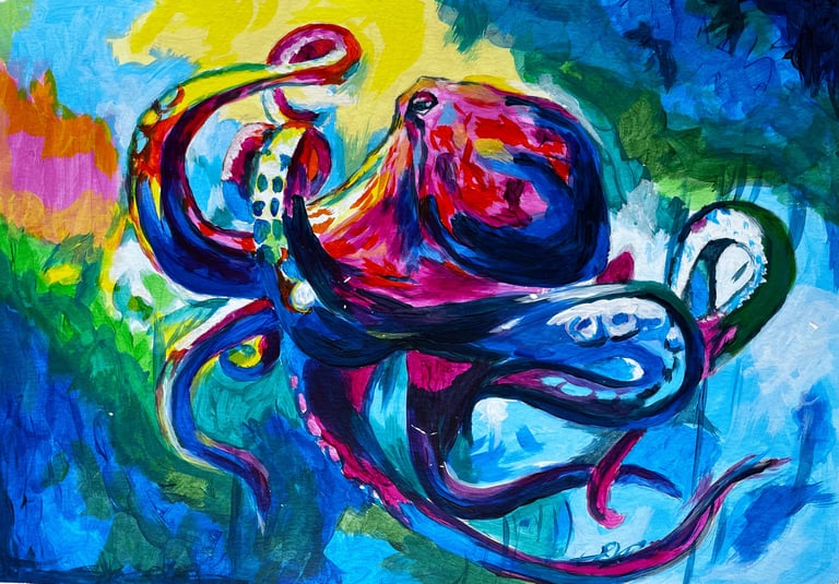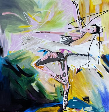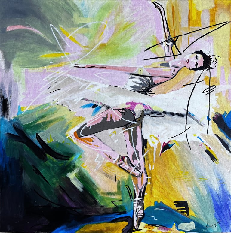El color construye el gesto, la energía y la presencia que conecta directamente con el espectador.En esta obra el movimiento no solo se observa, se siente.