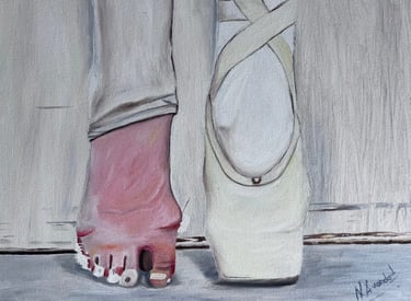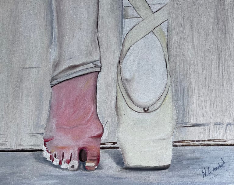 Mientras en escena vemos a la bailarina impecable, aquí muestro la otra realidad: la entrega, las heridas y el esfuerzo silencioso que sostienen toda vocación. Un pie preparado para bailar.