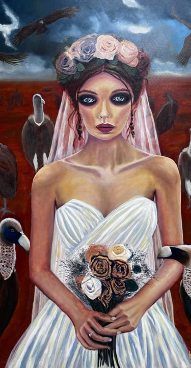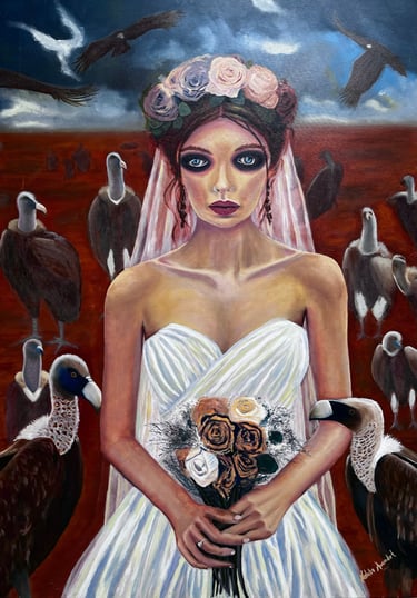 Durante más de 4 meses de trabajo, esta obra tomó forma capa tras capa de óleo sobre lienzo. Radack representa a la novia que no teme a la sombra, símbolo de la resiliencia y la fuerza de las mujeres que caminan solas y se enfrentan al mundo con determinación. Con una paleta profunda y contrastes sutiles, es una pieza que invita a la contemplación y al diálogo interior. Un lienzo pensado para quienes buscan más que arte: una declaración de poder y libertad.
